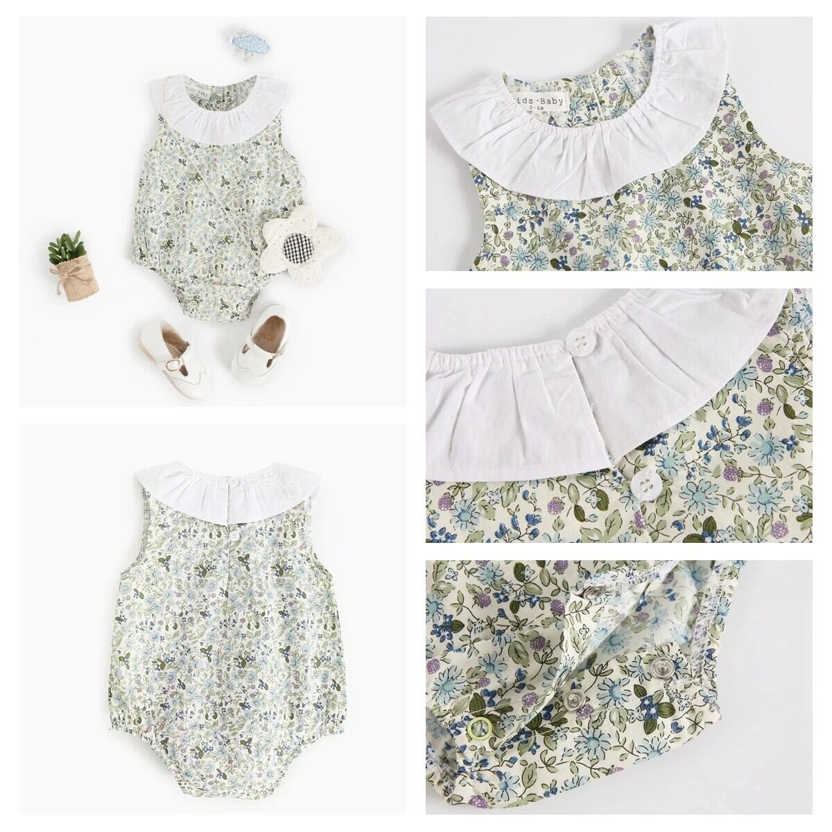 Floral Rompers/フローラルロンパース 女の子 子供 こども 子供服 ベビー ベビー服 ロンパース ジャンプスーツ 丸襟 ガーリー ノースリーブ 夏 公園 おでかけ
