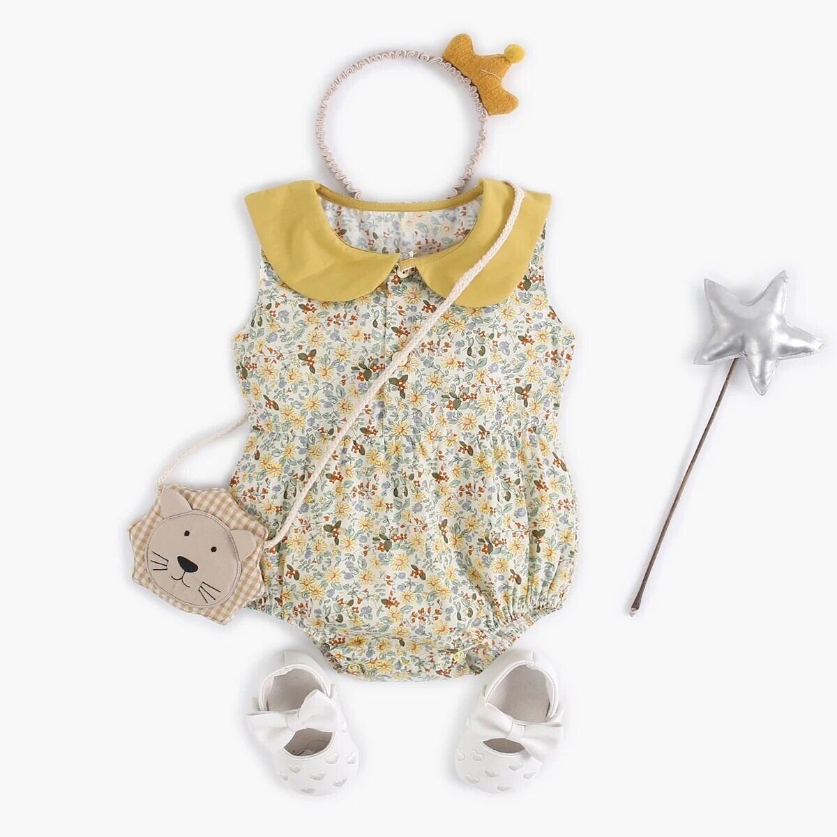 Floral Rompers/フローラルロンパース 女の子 子供 こども 子供服 ベビー ベビー服 ロンパース ジャンプスーツ 丸襟 ガーリー ノースリーブ 夏 公園 おでかけ 花柄