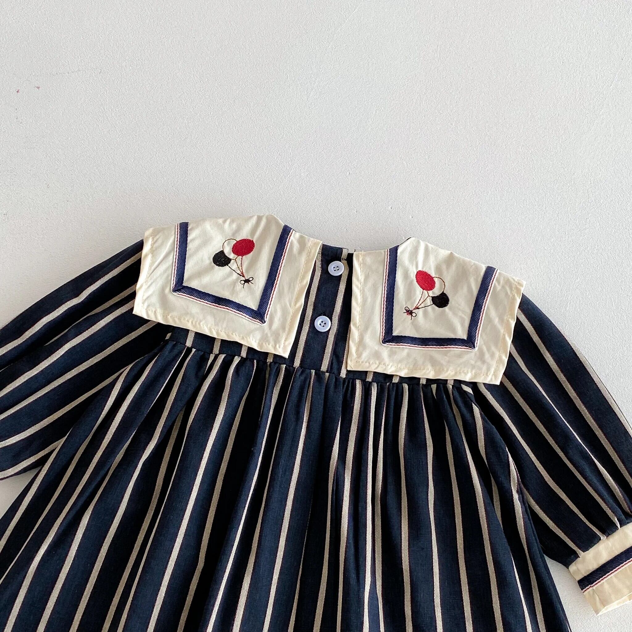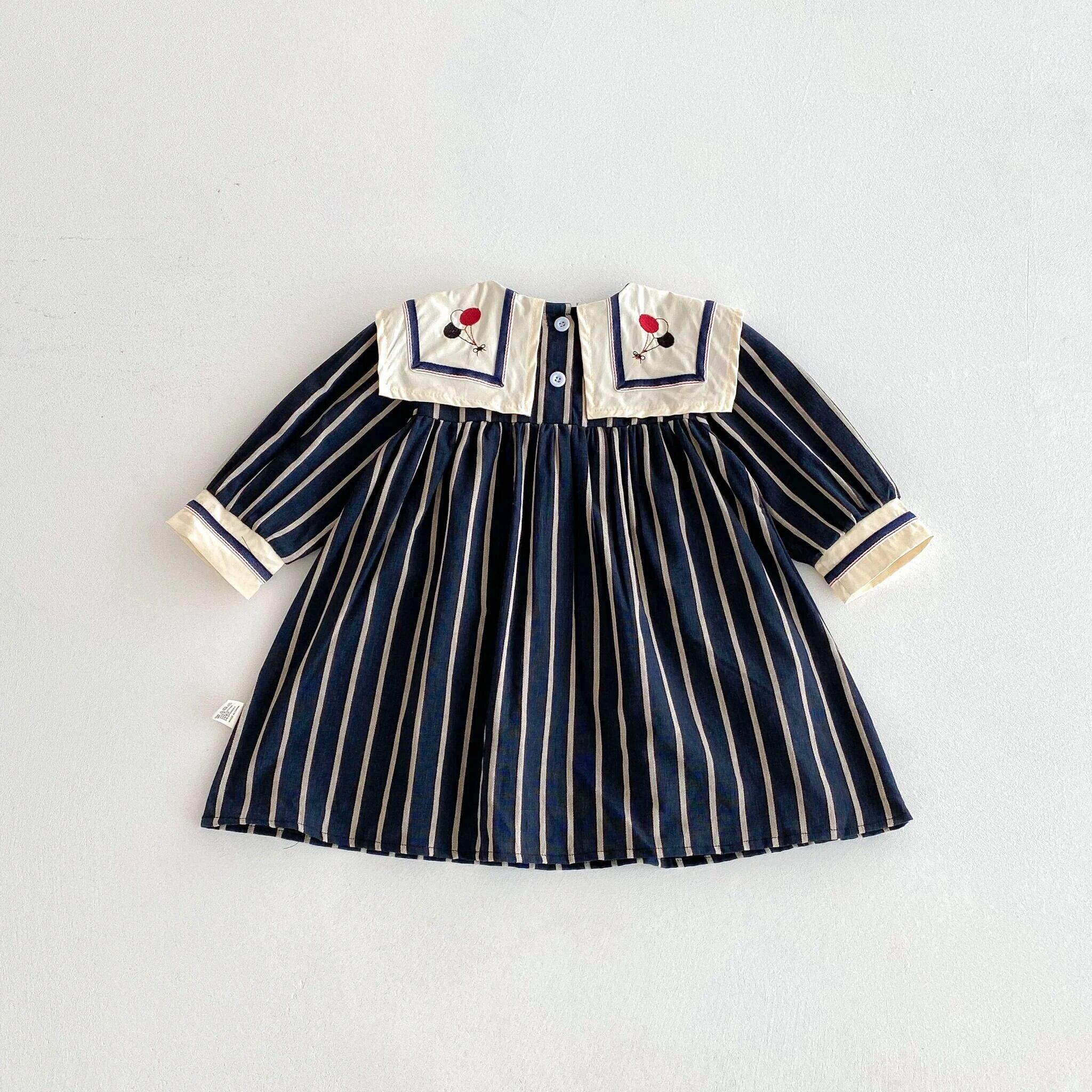 Square Collar Dress/スクエアカラードレス ベビー ベビー服 ドレス ワンピース 子供服 子ども服 刺繍 スクエアカラー ストライプ 長袖