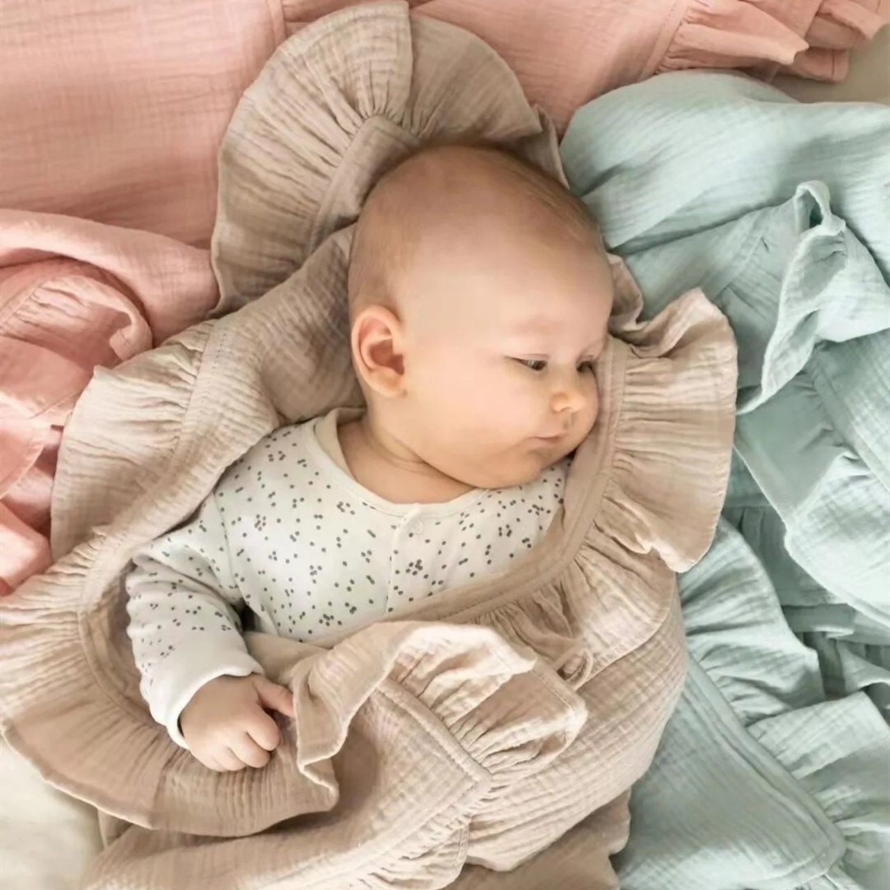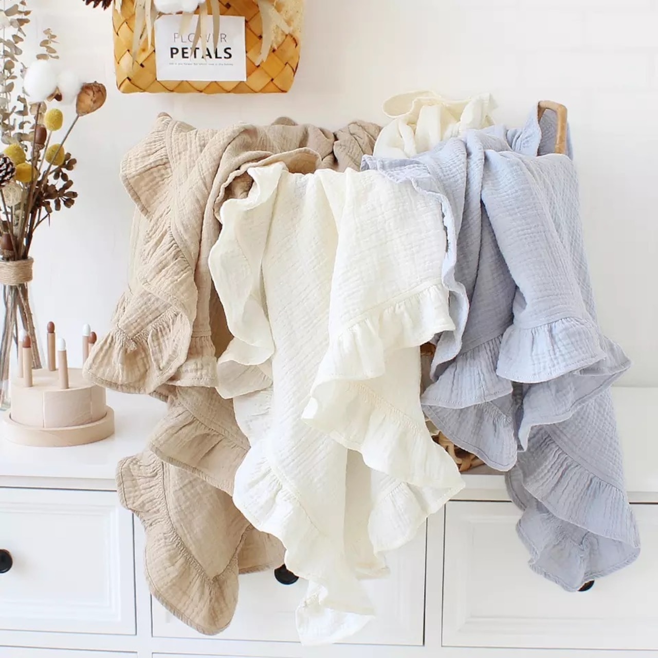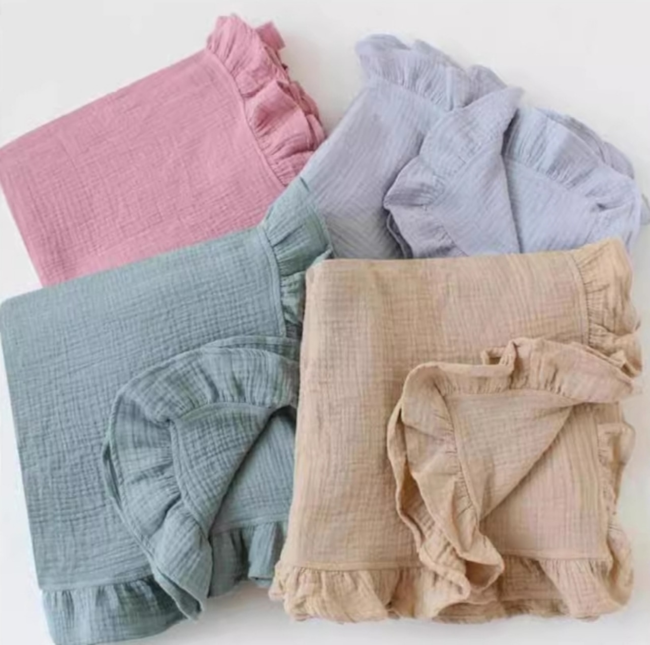 【即納】Cotton Frill Blanket S/コットンおくるみ Sサイズ コットン おくるみ 綿 柔らかい ベビー 乳児 赤ちゃん プレゼント ギフト シンプル 5色展開 人気 おすすめ ニューボーン