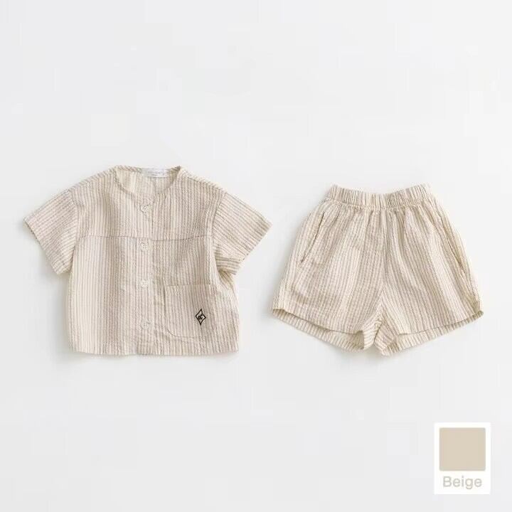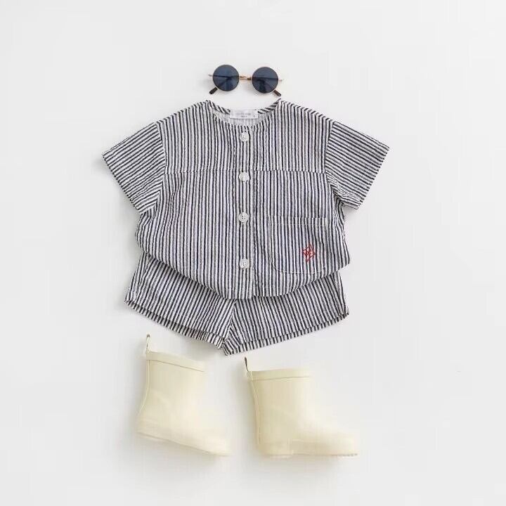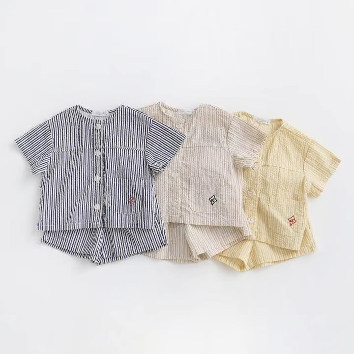Cotton Stripe Matching Set/ストライプシャツセットアップ 上下 セットアップ ストライプ 男の子 半袖 夏 3色展開 キッズ ベビー ベビー服 子供服