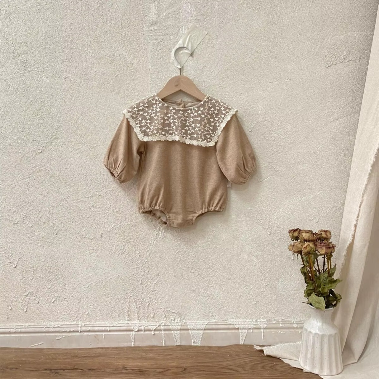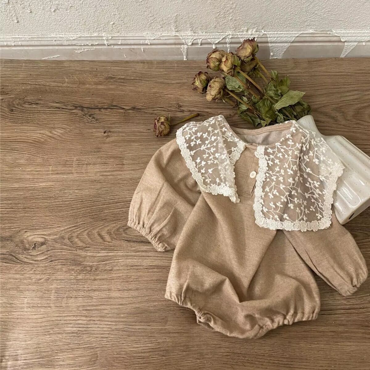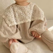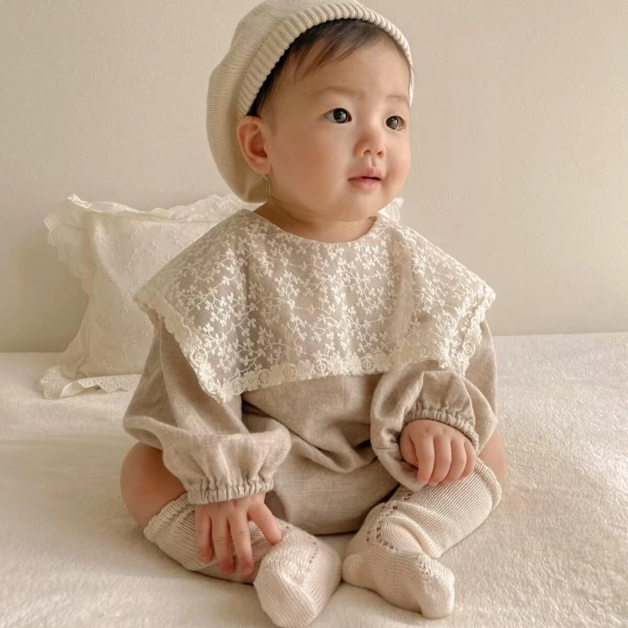 Lace Square Collar Rompers/レーススクエアカラーロンパース レース 四角襟 女の子 ロンパース ベビー ベビー服 ナチュラルカラー 赤ちゃん 乳児