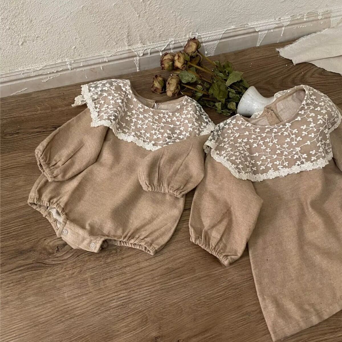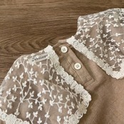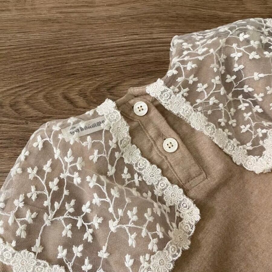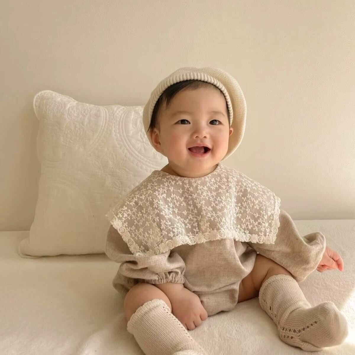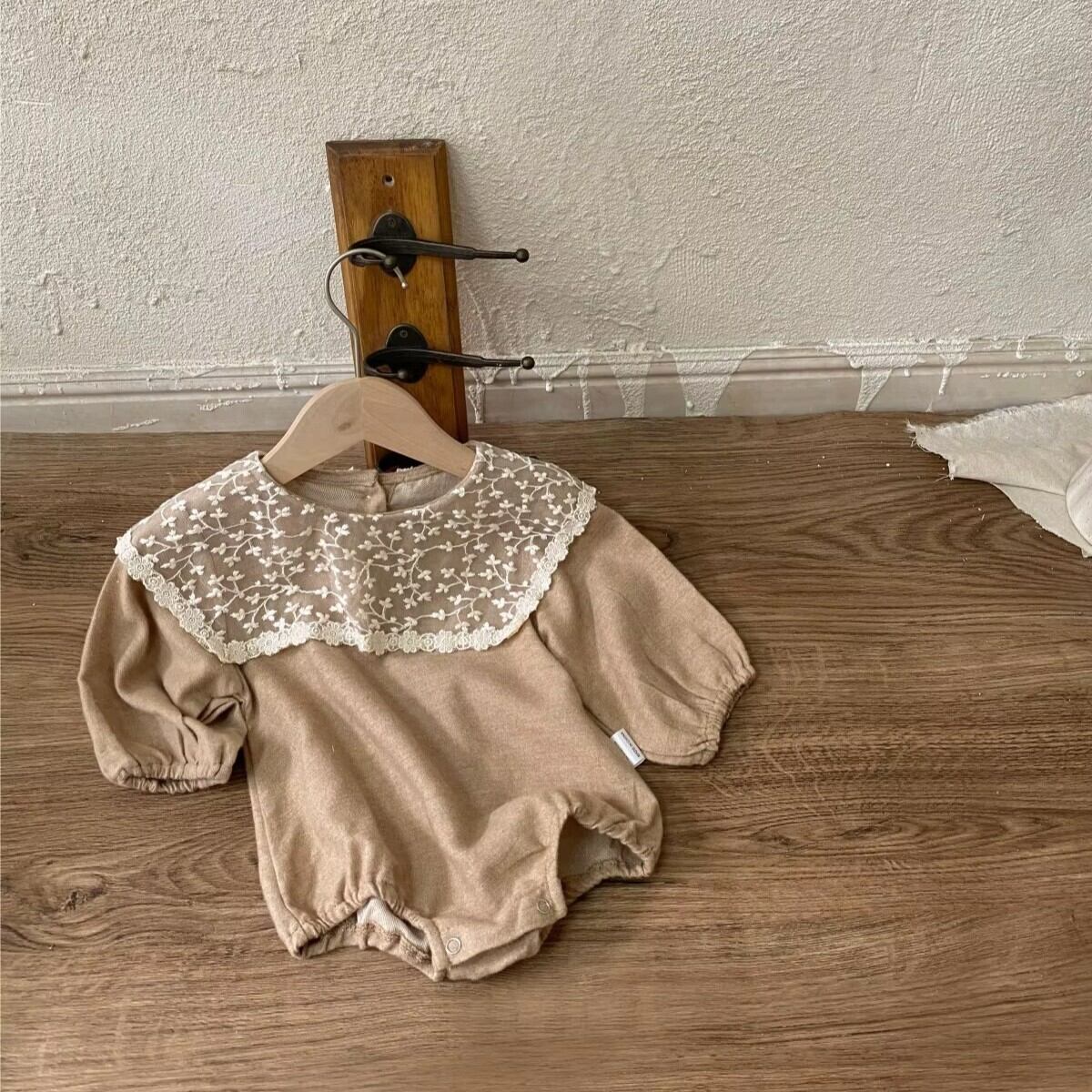 Lace Square Collar Rompers/レーススクエアカラーロンパース レース 四角襟 女の子 ロンパース ベビー ベビー服 ナチュラルカラー 赤ちゃん 乳児