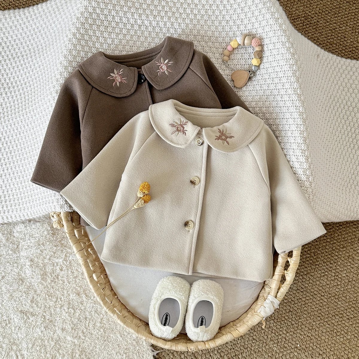 Floral Stitch Coat/フローラルステッチコート ベビー ベビー服 こども 子供 子供服 こども服 キッズ 長袖 コート アウター 花柄 刺繍 襟 女の子