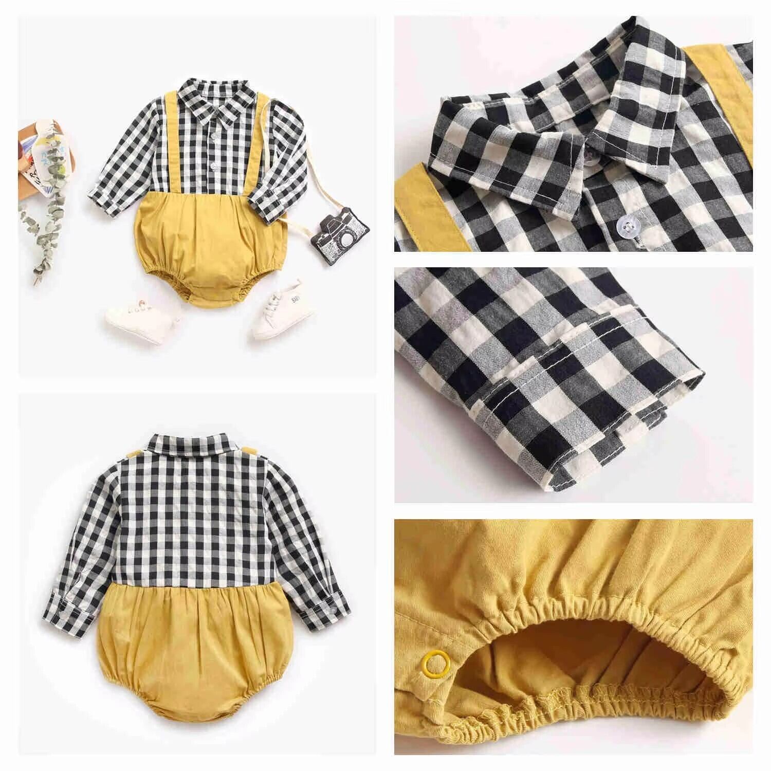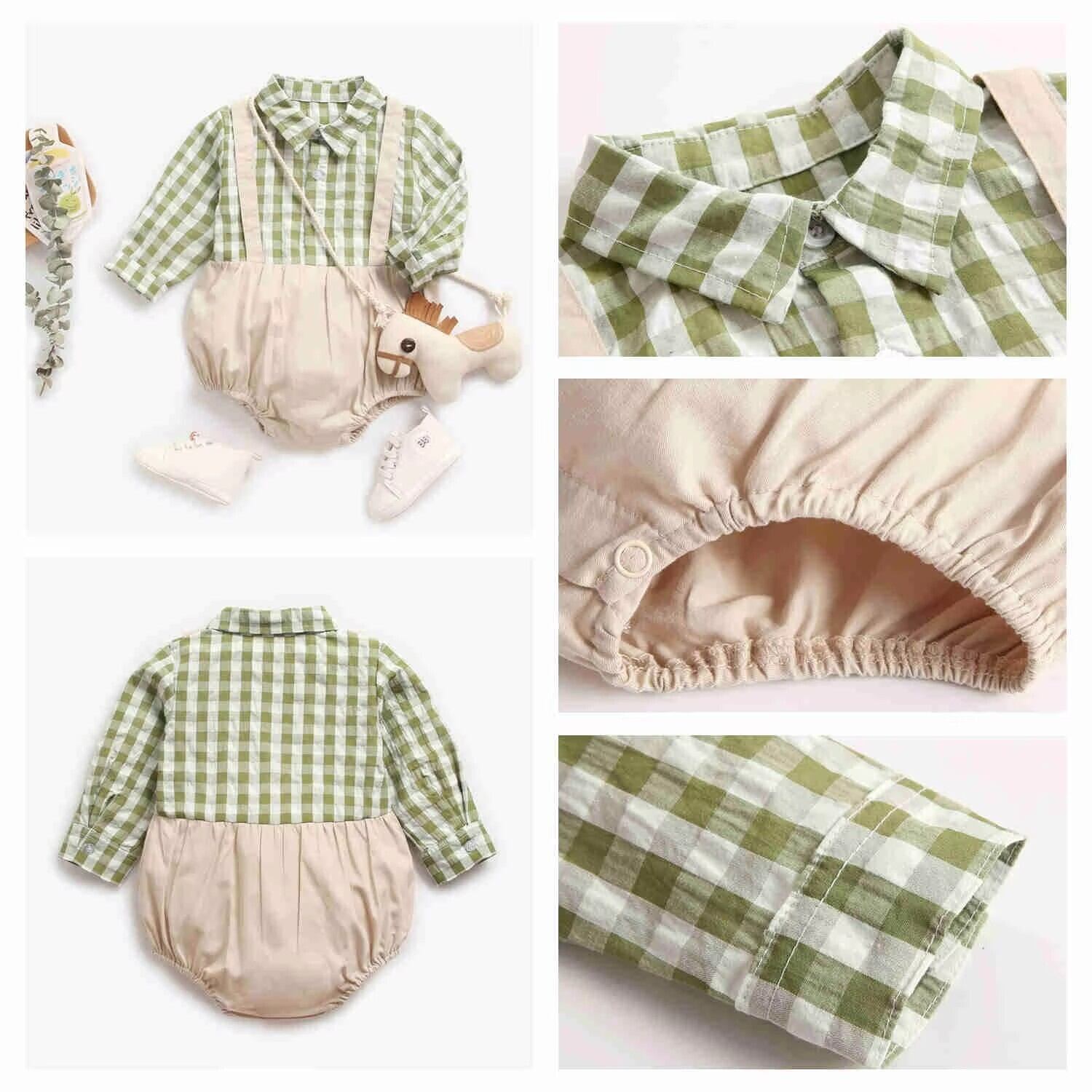 Plaid Shirt Rompers/チェック柄シャツロンパース 男の子 ベビー ベビー服 チェック柄 ネルシャツ風 ロンパース ジャンプスーツ 長袖