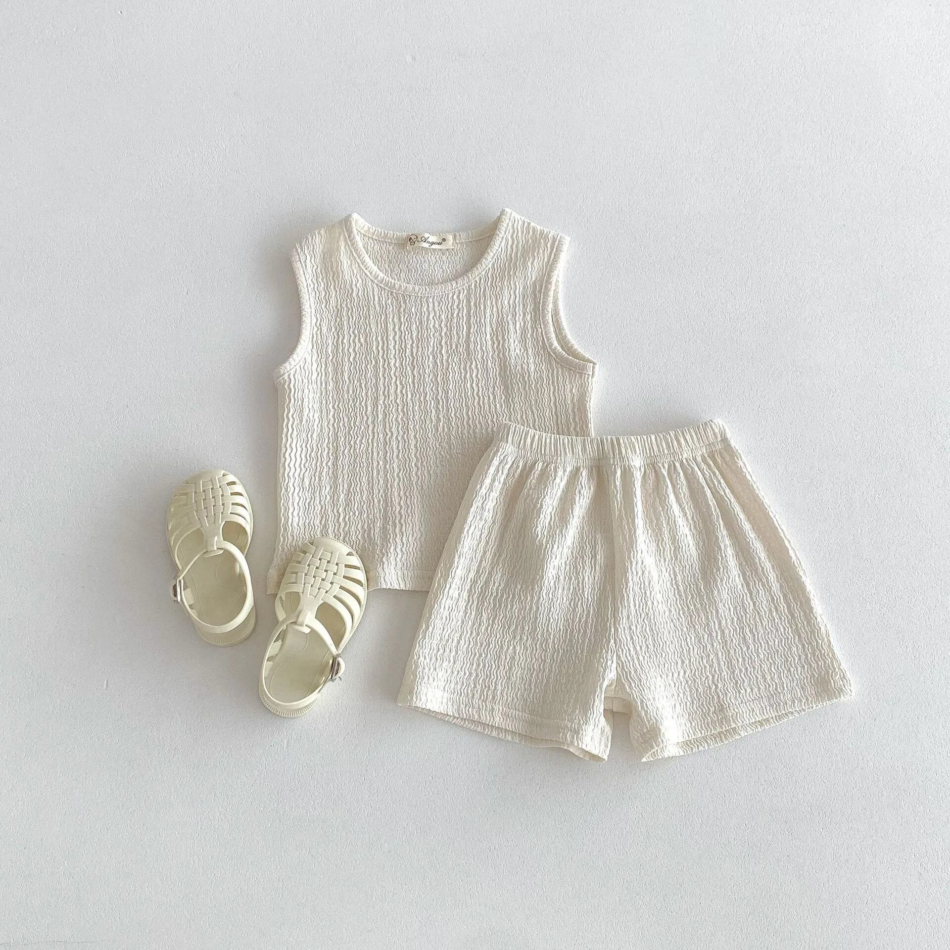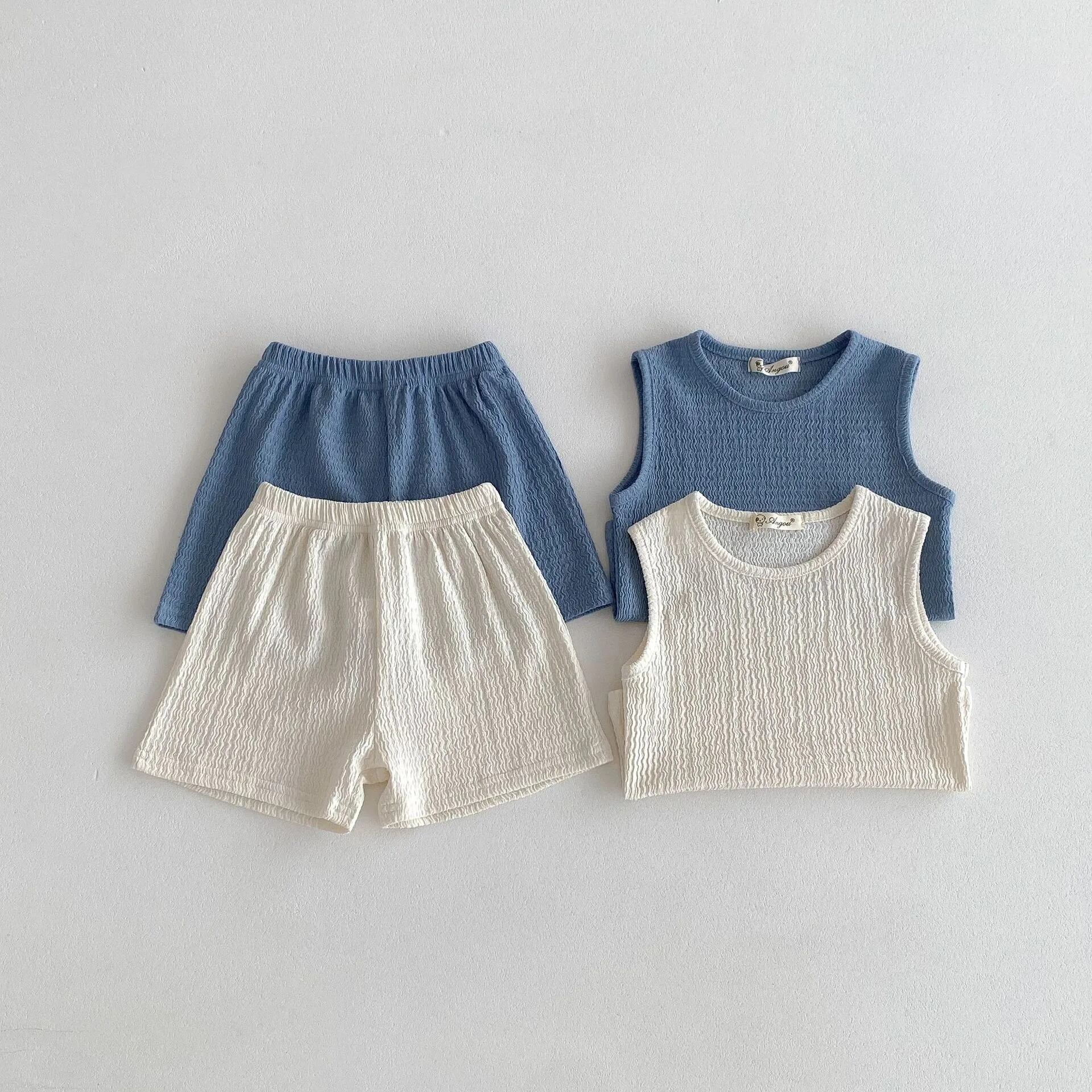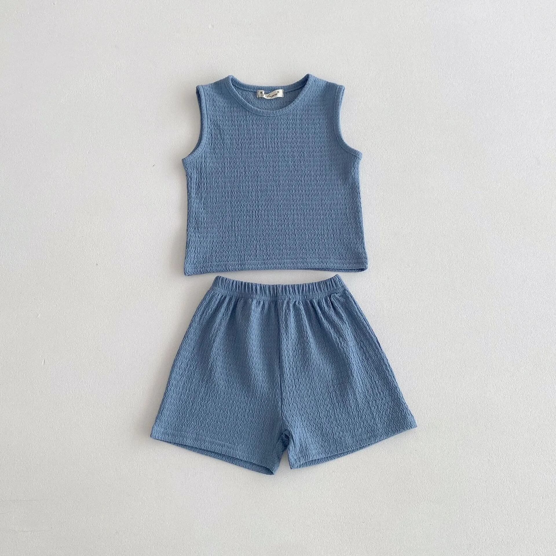 Simple Summer Matching Set/サマーセットアップ シンプル カラー 男の子 女の子 上下 セットアップ ベビー服 ベビー キッズ 子供服 ブルー ホワイト 涼しめ 夏 ノースリーブ タンクトップ ハーフパンツ