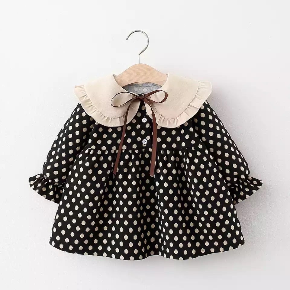 Round Collar Retro Dress/ラウンドカラーレトロワンピース ドット柄 女の子 ワンピース こども 子供服 ベビー ベビー服 襟 りぼん 長袖
