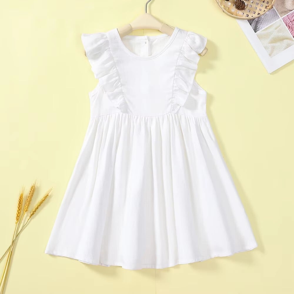 Cotton Linen Dress/コットンリネンワンピース フリル袖 ノースリーブ ワンピース ドレス シンプル こども 子供服 キッズ 海外子供服 ホワイト