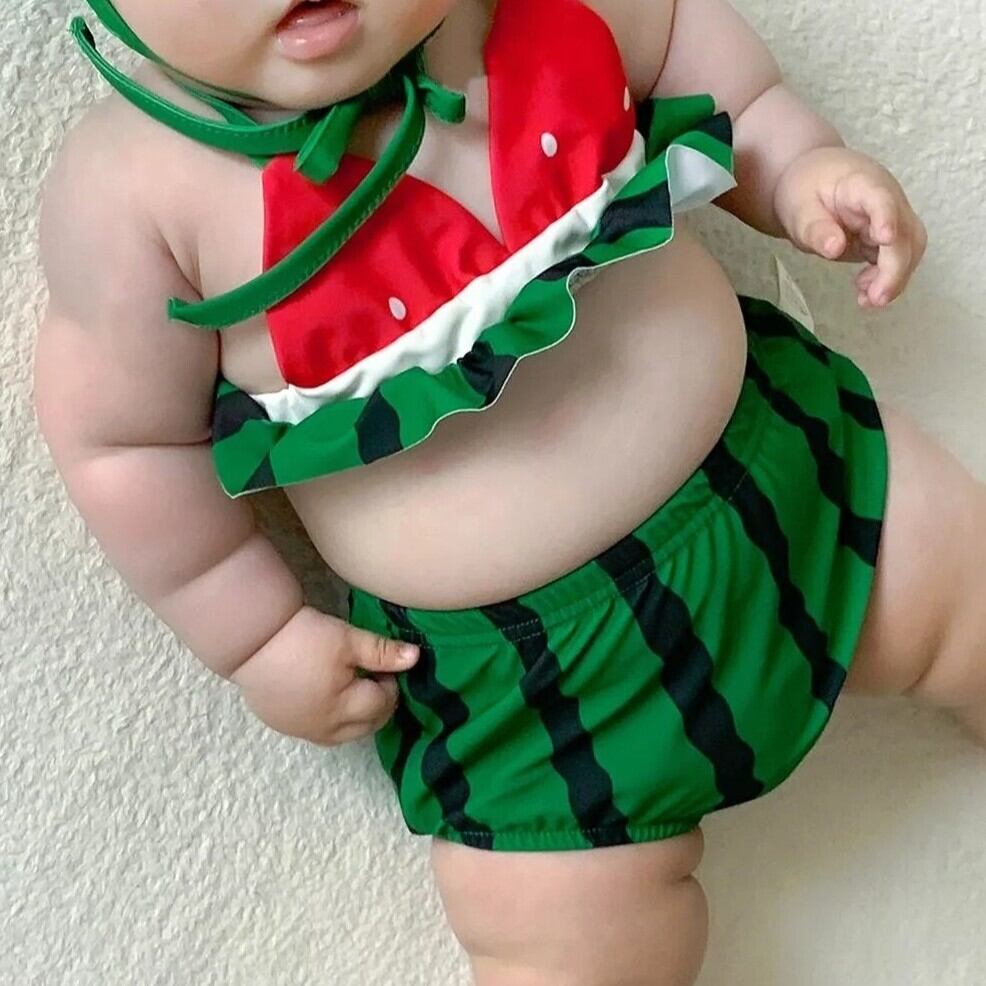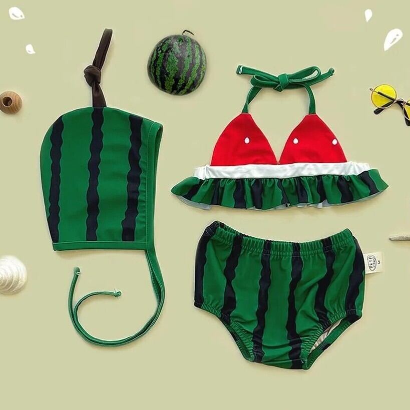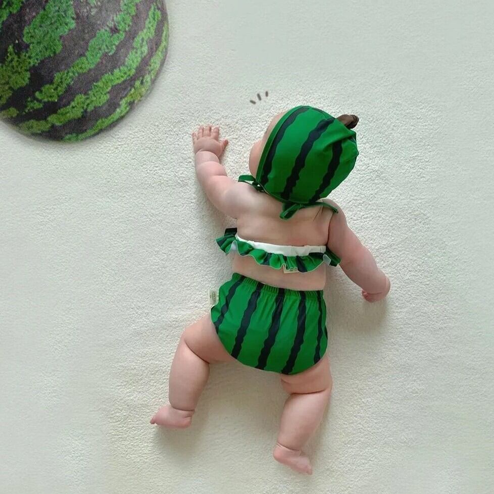 Watermelon Swimsuits/スイカフリルスイムスーツ 女の子 フリル 水着 夏 キッズ ベビー 海 プール リゾート
