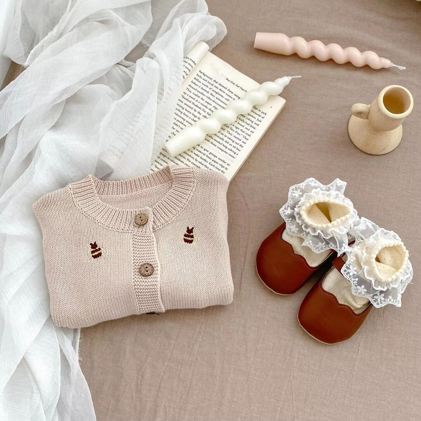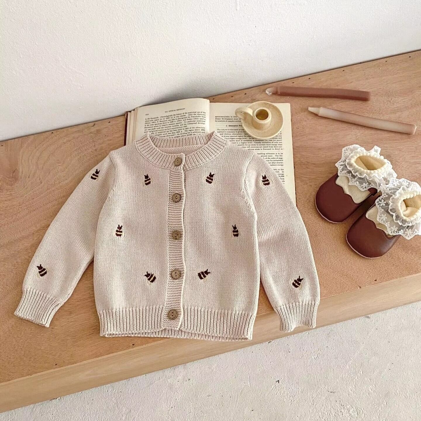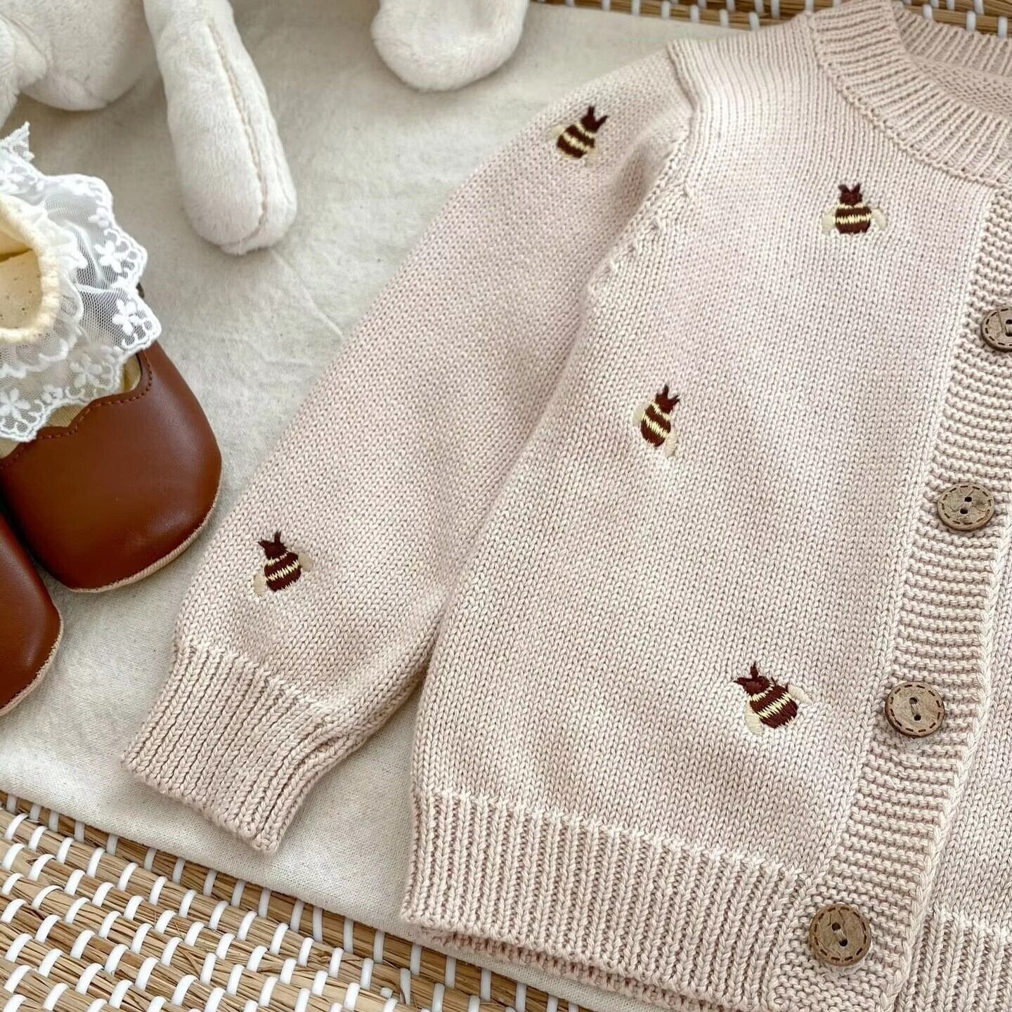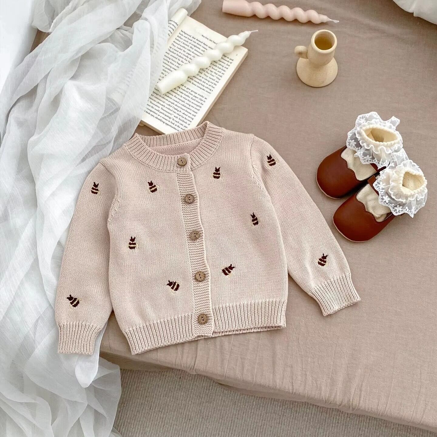 Bee Knitted Cardigan/みつばちニットカーディガン ベビー 赤ちゃん 春 子供服 ニット カーディガン トップス 刺繍 ハチ 蜂 女の子