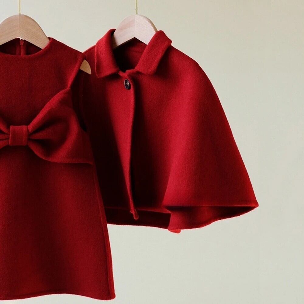 Formal Matching Set/フォーマルセットアップ 女の子 ベビー フォーマル 子供 こども 子供服 ワンピース ケープ 子供服 入学式 卒業式 リボン レッド 赤 お祝い 2点セット